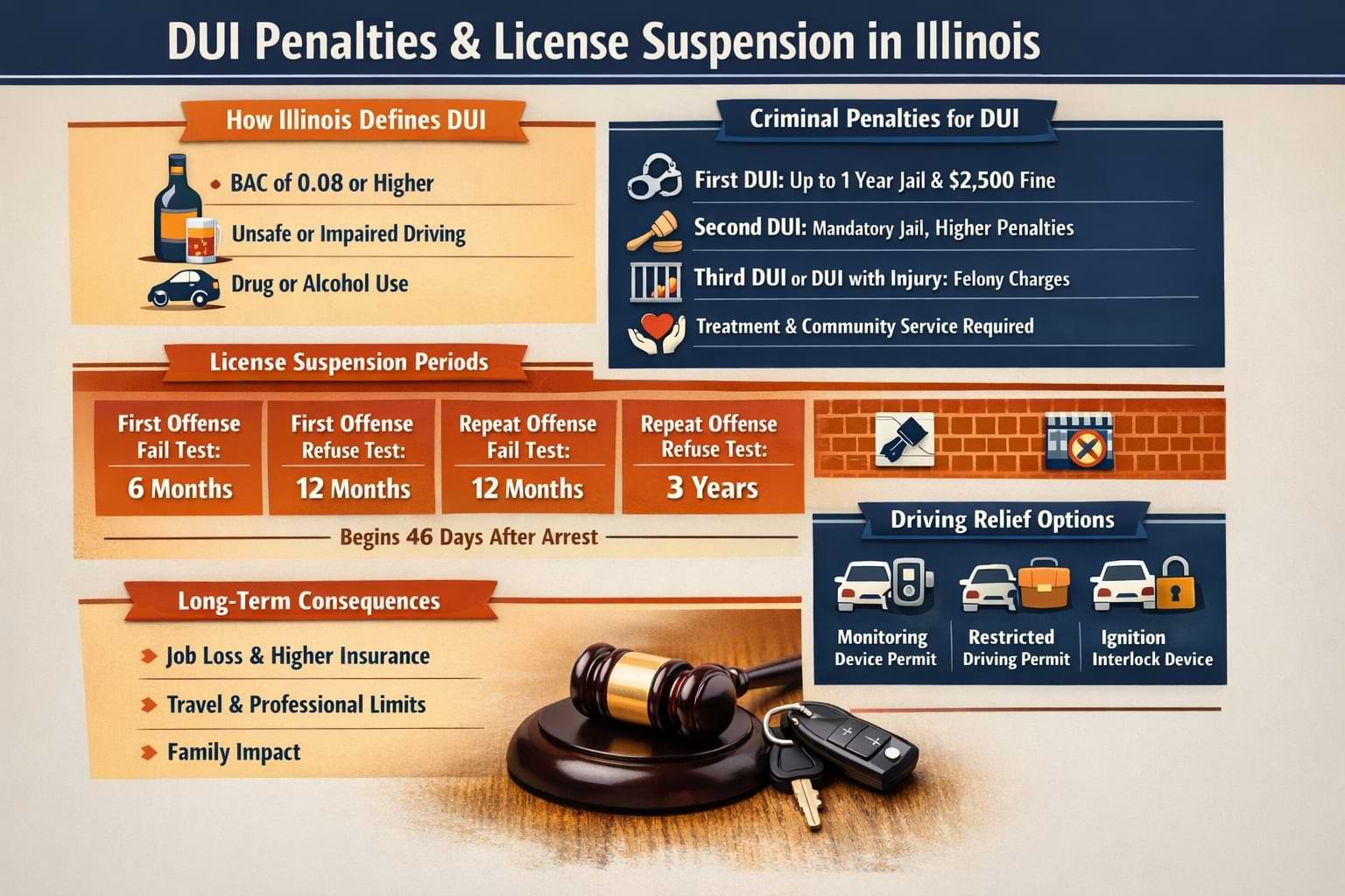 DUI in Illinois brings harsh penalties and fast license loss. The system can feel cold and punishing. You still have power. You can learn the rules. You can meet each deadline. You can seek support when you need it.